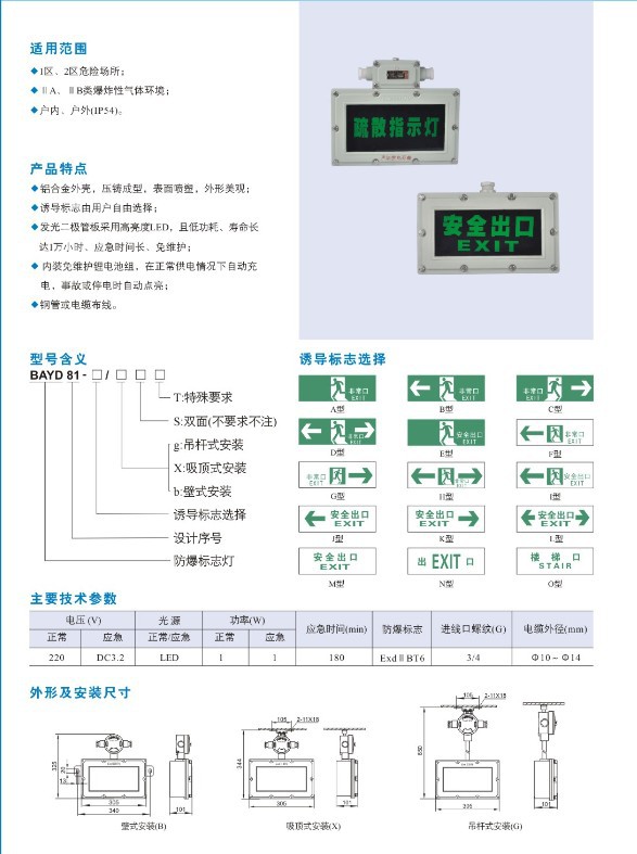 | 防爆標(biāo)志燈規(guī)格參數(shù) | |