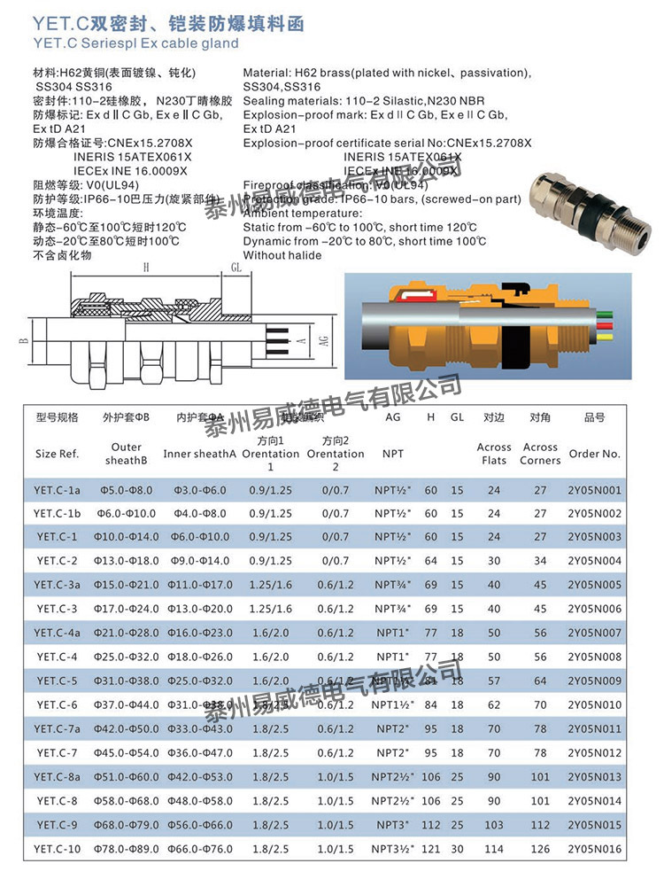 | 產品型號 | YET.C系列防爆填料函 |