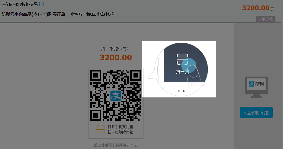 防爆云平臺支持使用支付寶付手機掃碼支付。