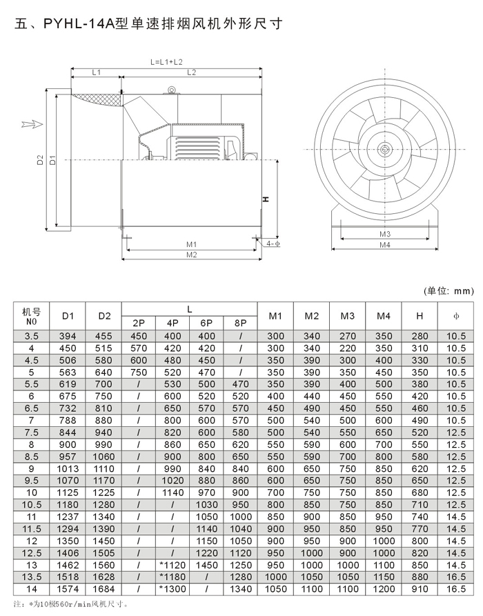PYHL-14A風機Ⅰ型單速結構緊湊,節省安裝空間。Ⅱ型雙速在進風口設風口消聲集流器,使風機在低速排風時運轉噪音更低。